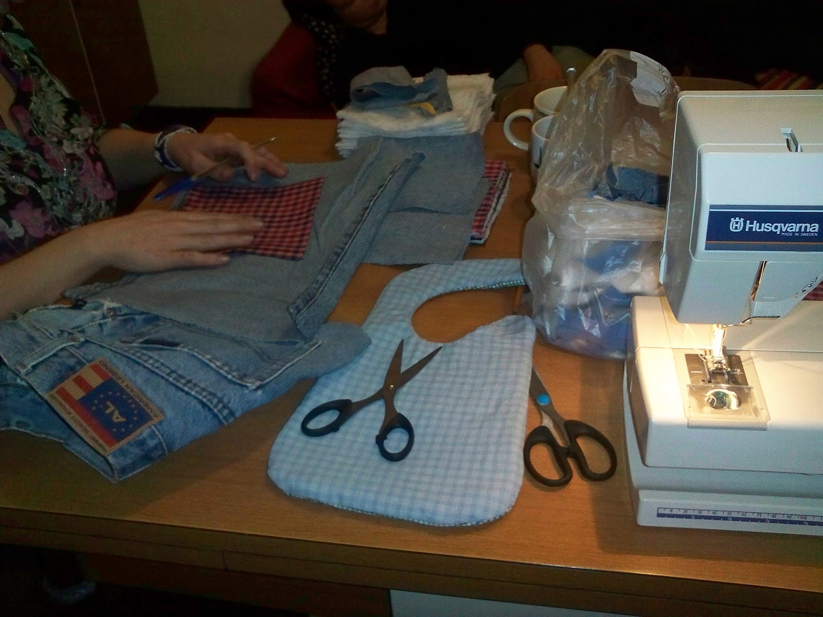 uhMMMM con cosa le imbottisco?? Ma si, "sacrifichiamo" questa trapunta regalo della Bottega verde (matrimoniale, 5 euro ehehehe però tiene caldo!!!)